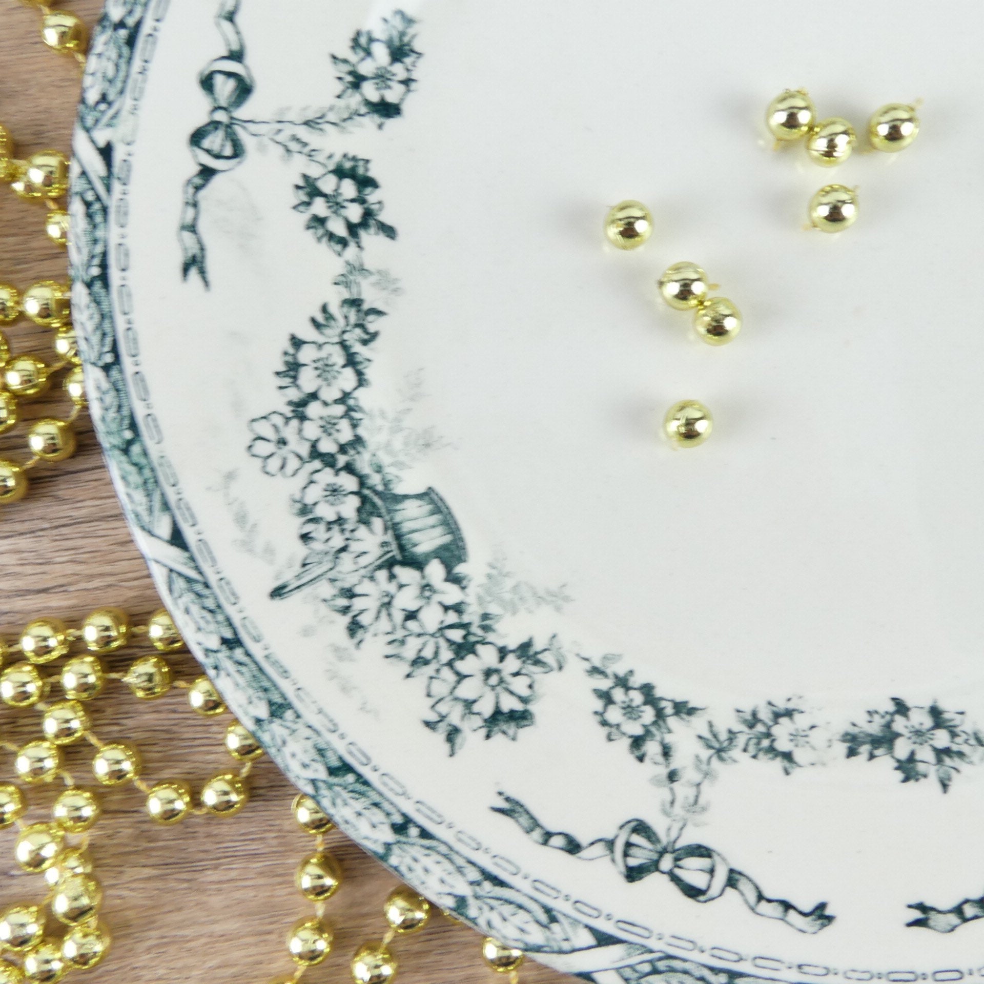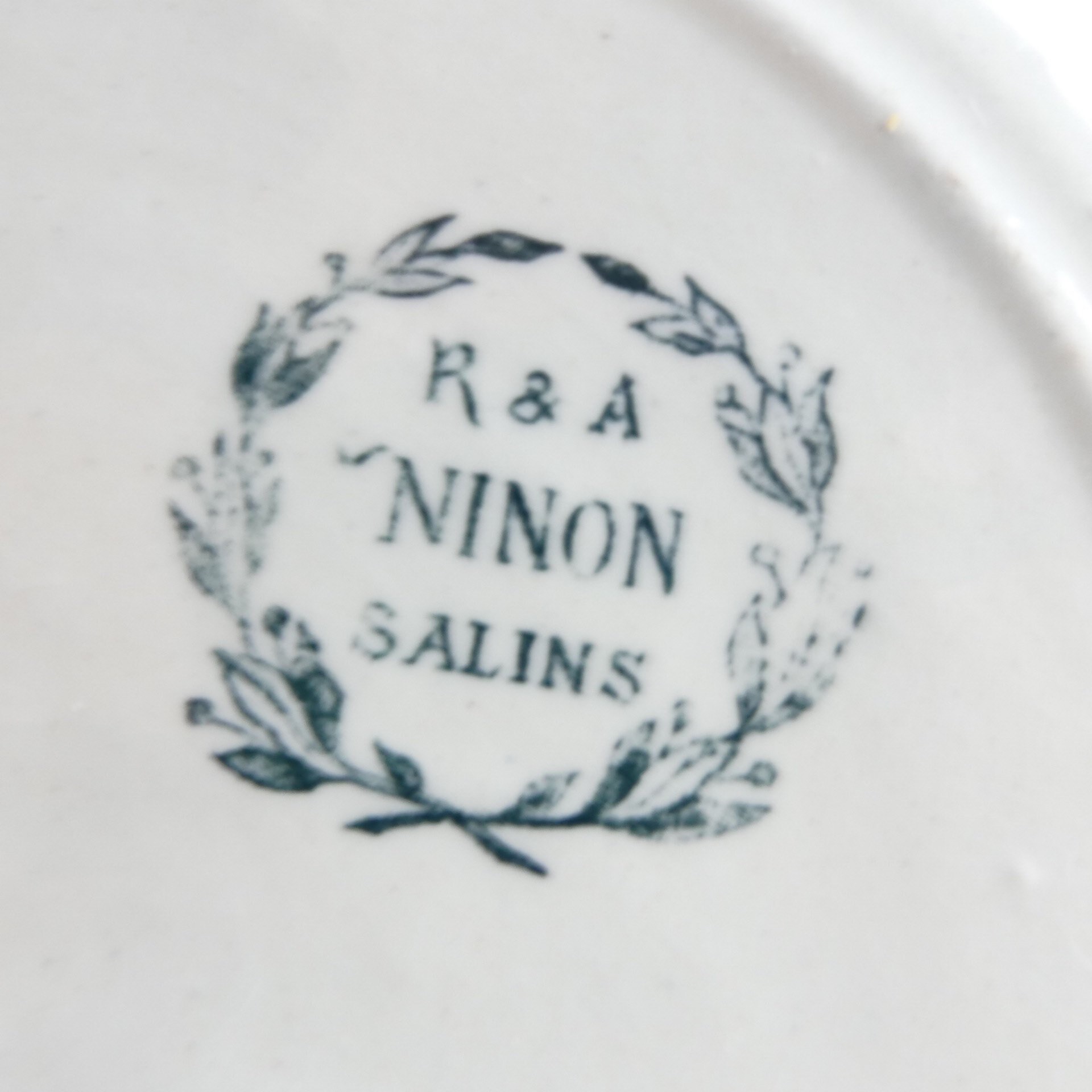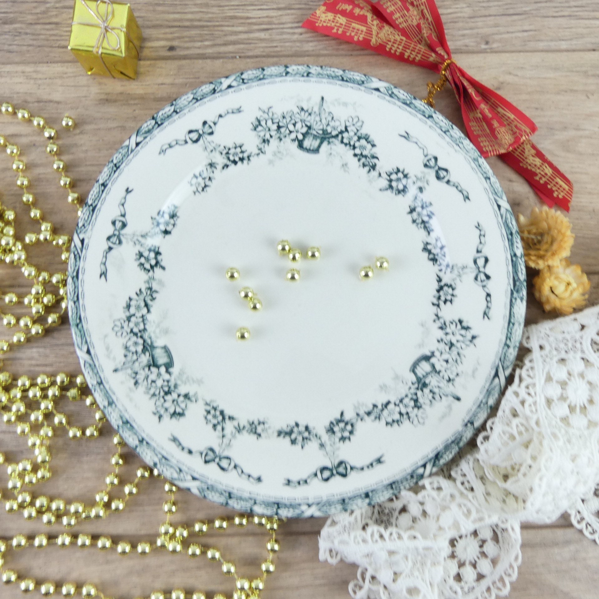 French flat plate Salins Ninon, dinner plate decorated with shabby chic knot, iron land france, vintage plate