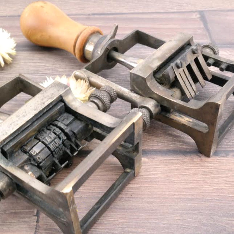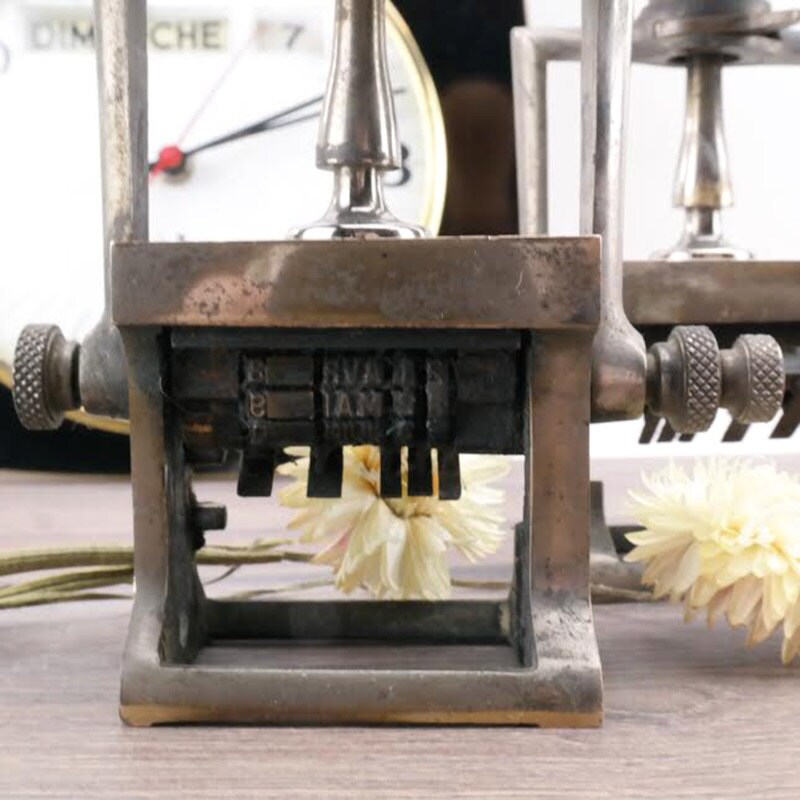 Here are two splendid old mechanical office buffers. Their indication of tampon informs us that they come from the Pharmacy of the Parc des Princes, Paris, 16th Arrondissement.