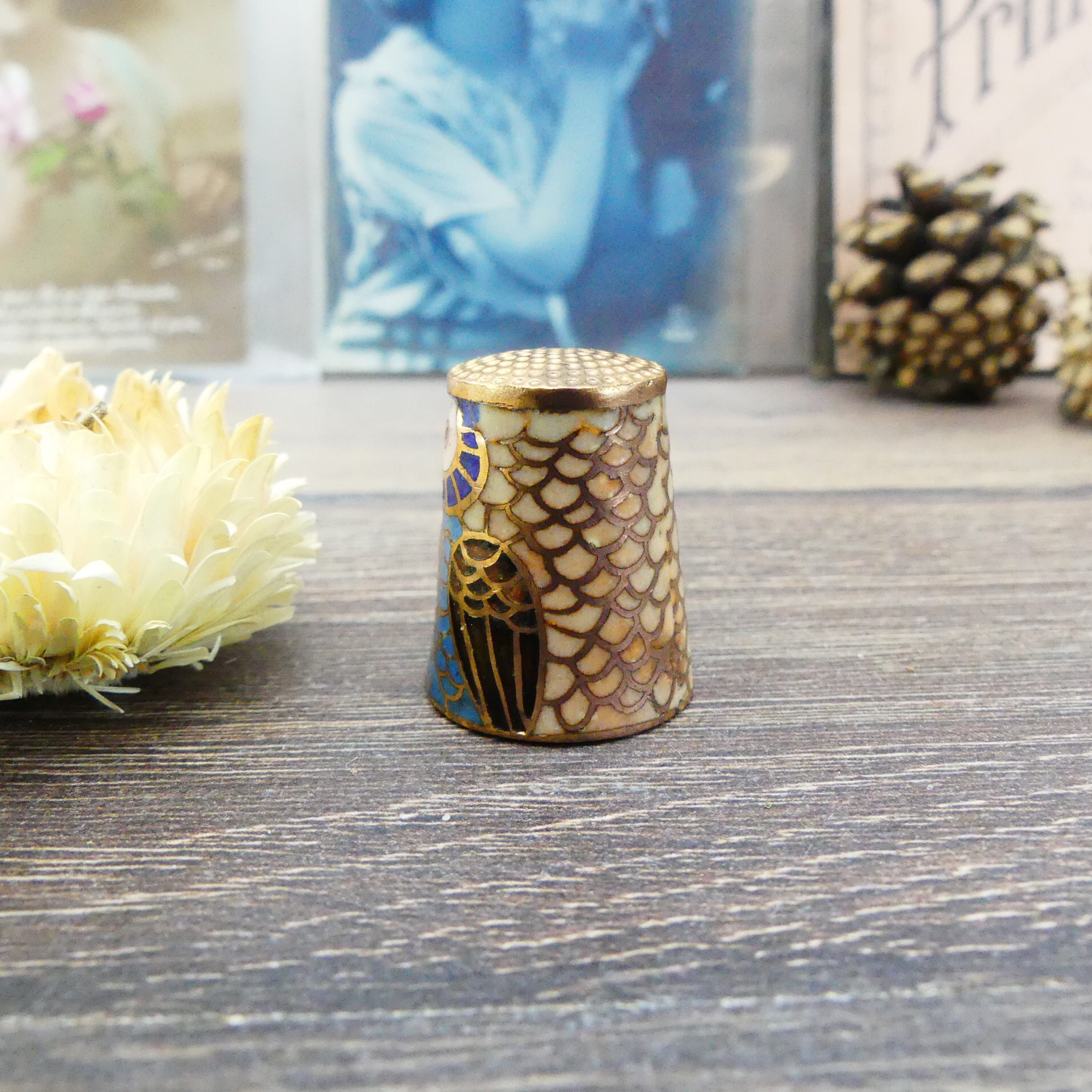 Sewing thimble - collectible thimble - enamelled porcelain thimble - bird - Owl - Antique thimbles - Sewing accessory