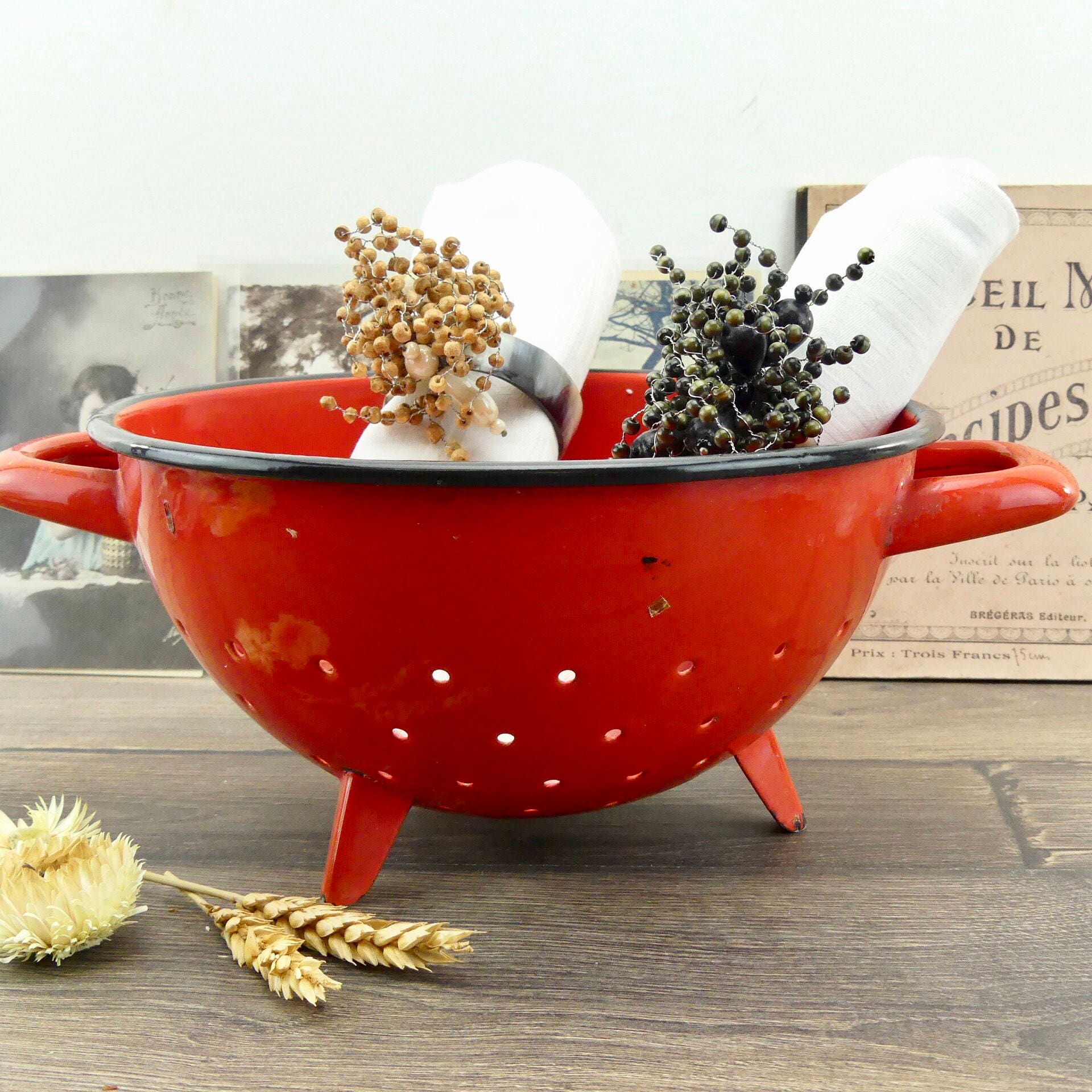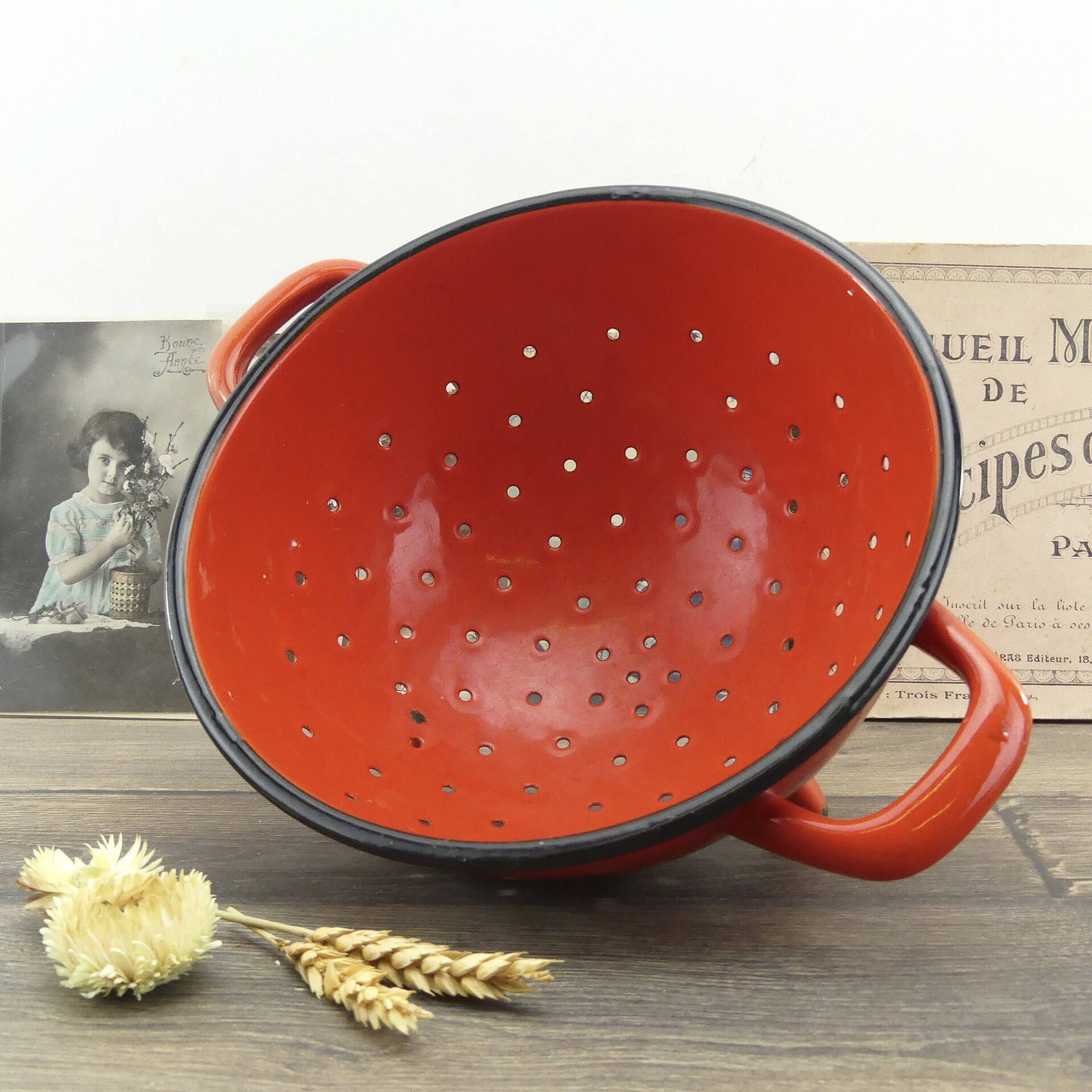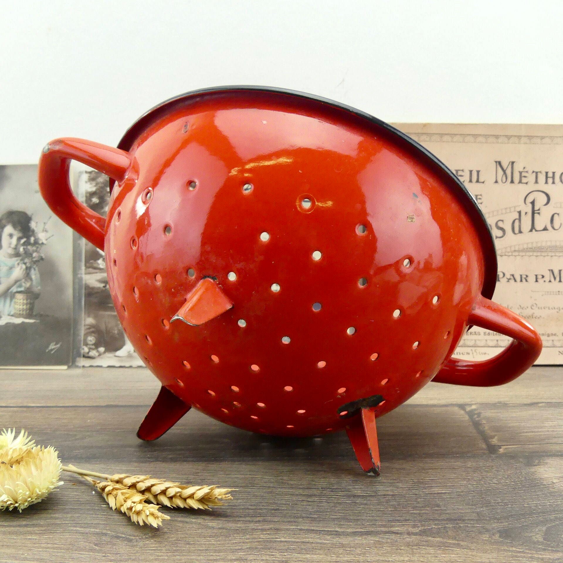 Enamel Red French Strainer - Vintage kitchen - French red colander - Antique decor - Country chic - Antique decor - Colander