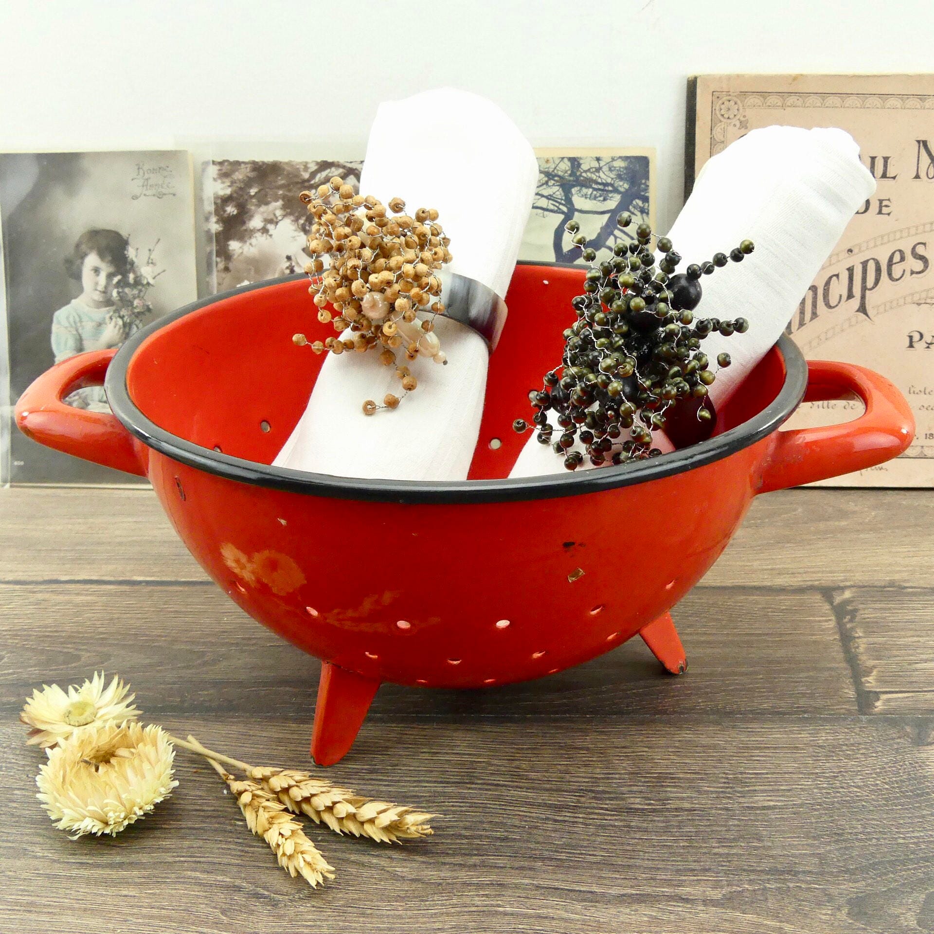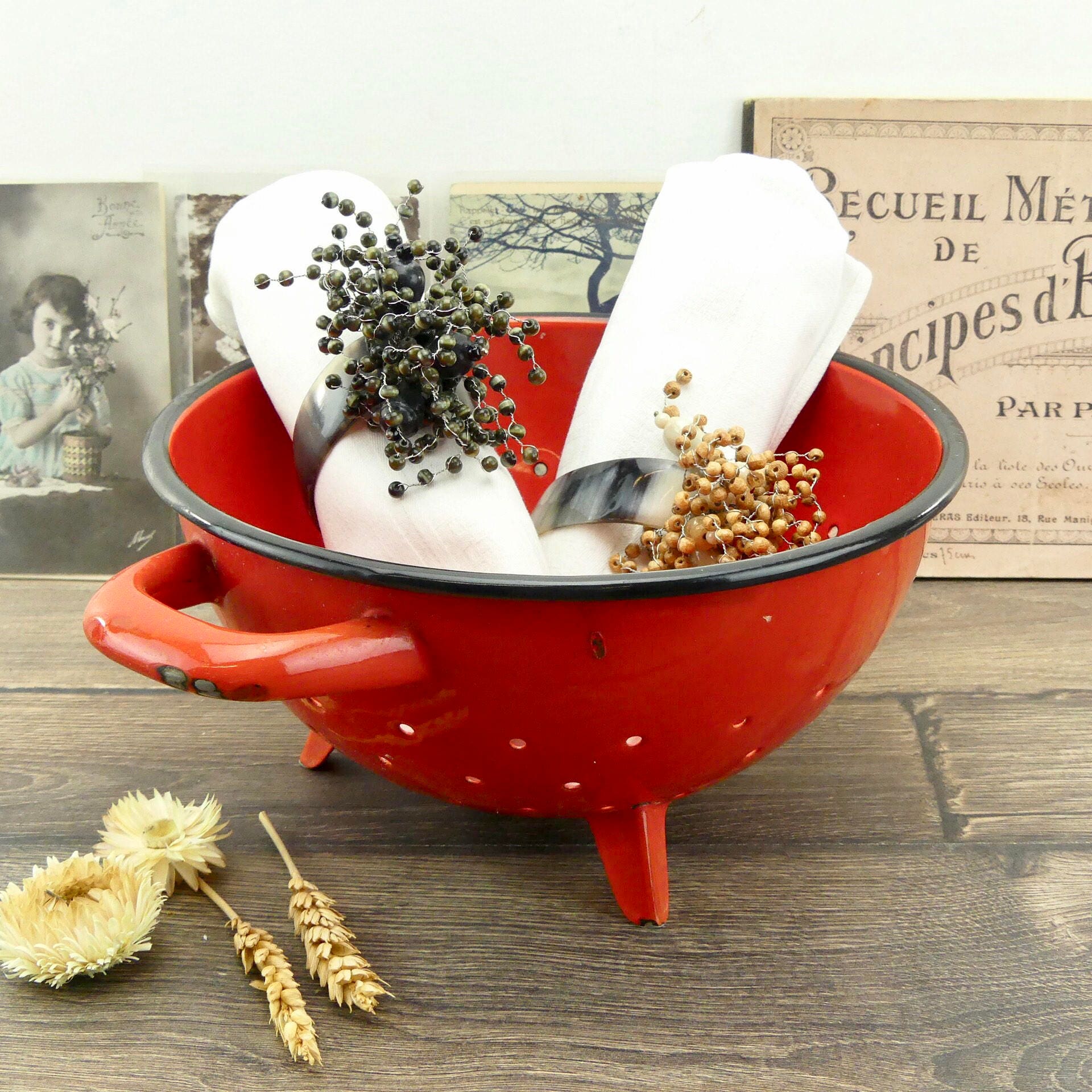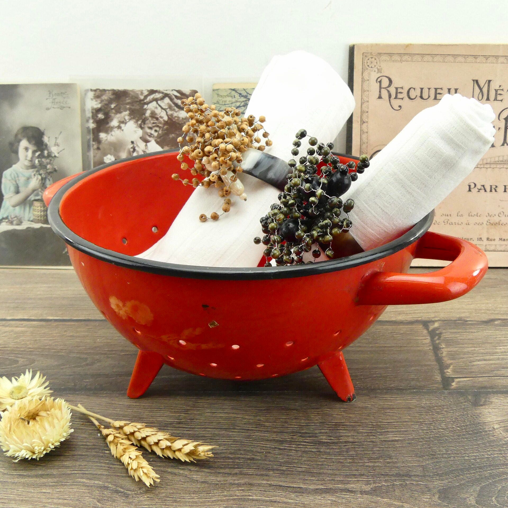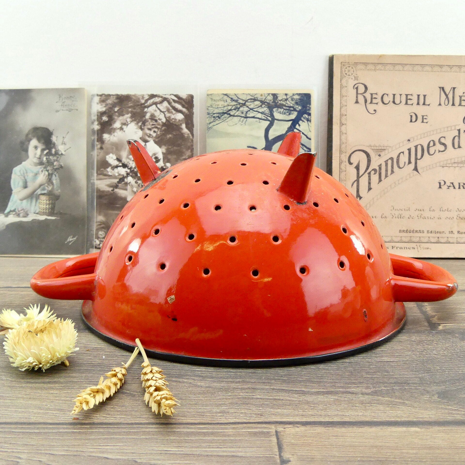 Enamel Red French Strainer - Vintage kitchen - French red colander - Antique decor - Country chic - Antique decor - Colander