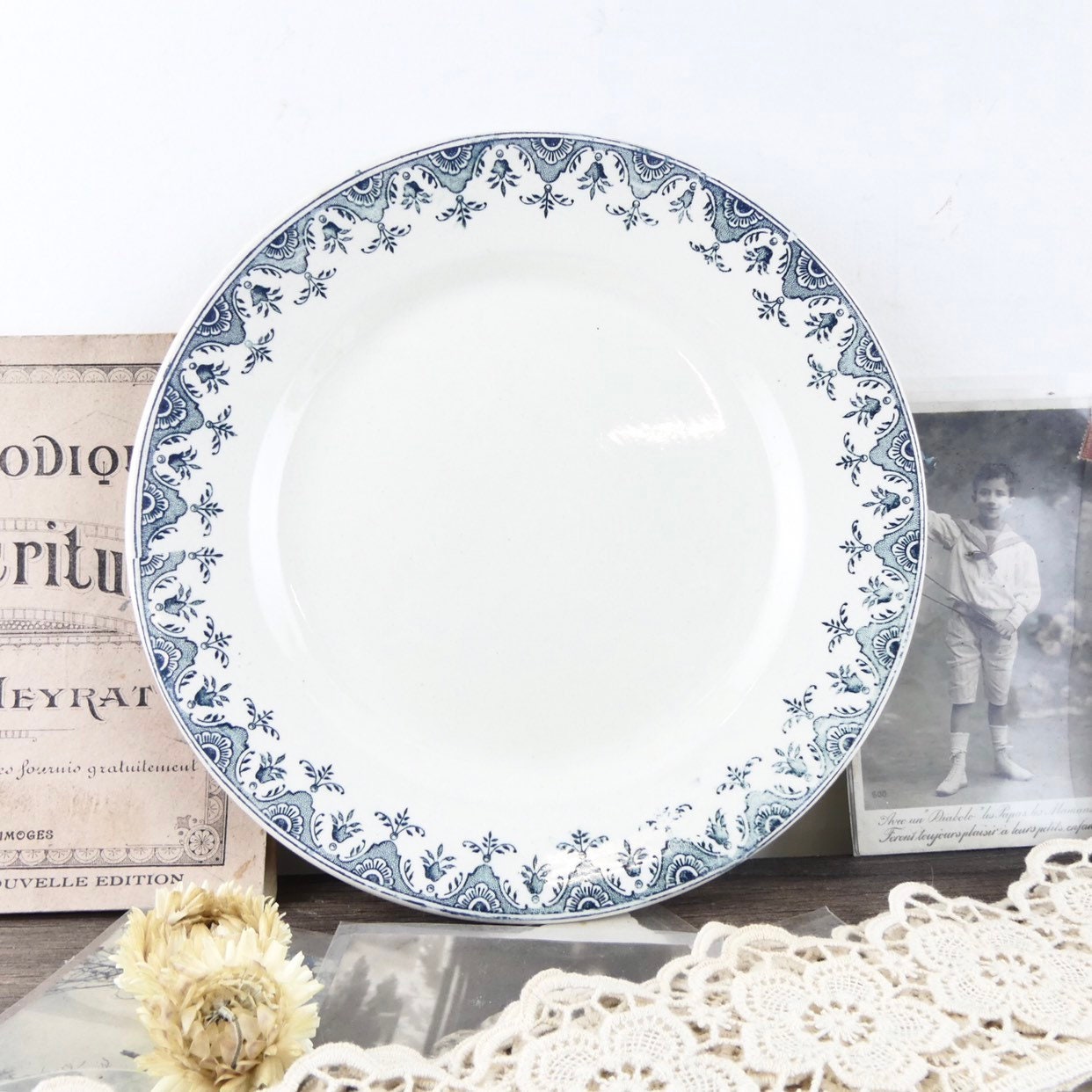 Here are 2 19th century French plates made of Iron Earth from Clairefontaine. They are in perfect condition: no gaps, no cracks, no tasks: perfect! It's the Doullens model.