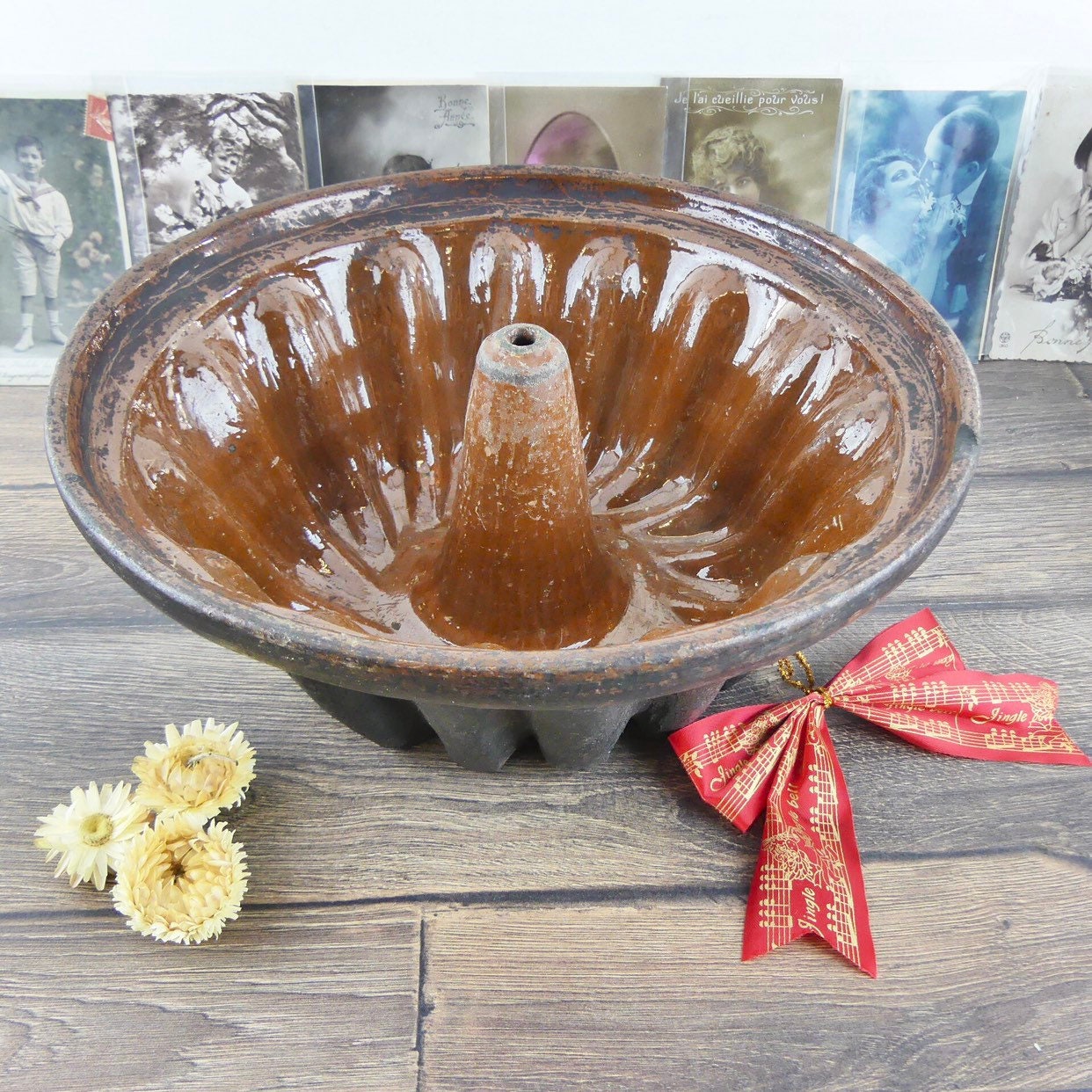 Old cake mold Kouglof terracotta, ancient Alsace mould