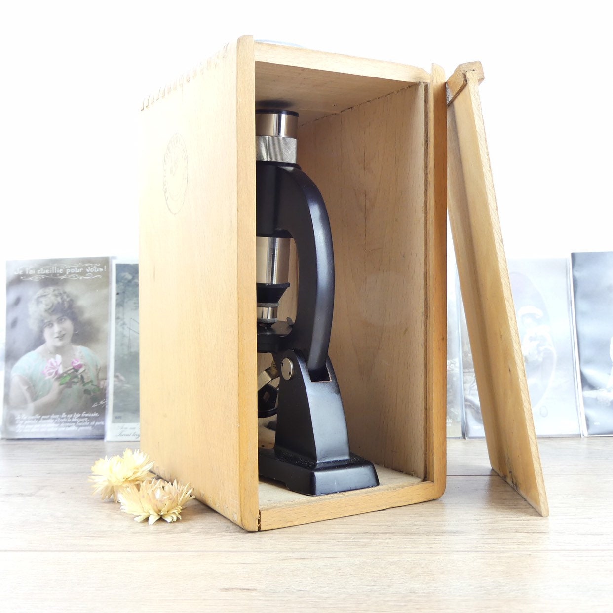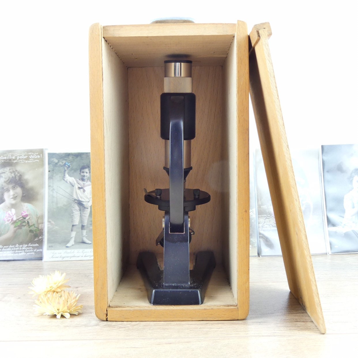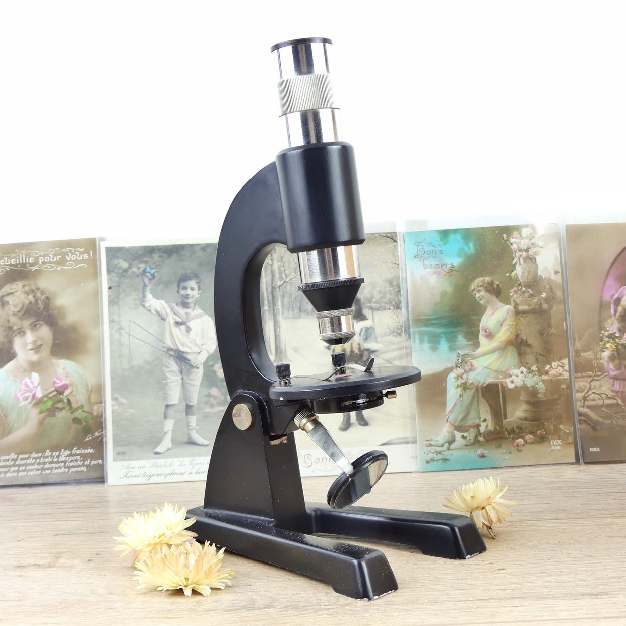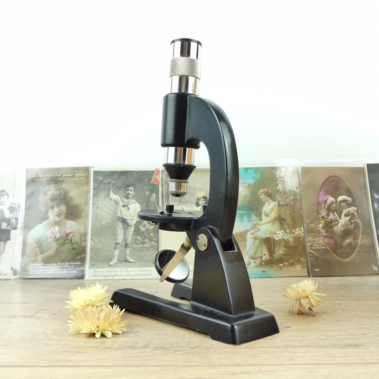Former black microscope 1950 industrial loft decoration, optical microscope.